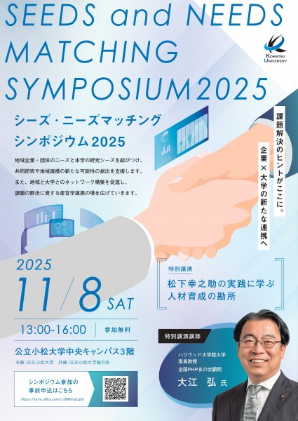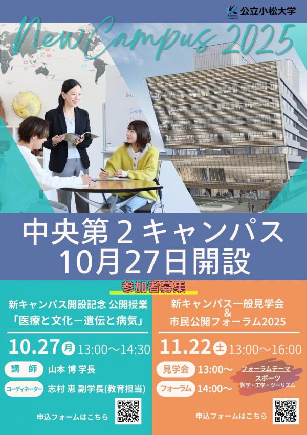NEWS一覧を見る すべて イベント ニュース ニュース2025年9月18日 公立小松大学中央第2キャンパス10月27日開設【参加者募集】... ニュース2025年8月19日 平日放課後☆ふらっとキャンパス見学会を開催します! ニュース2025年5月14日 生産システム科学科の地域推薦に女子枠新設、推薦可能地域拡大! ニュース2025年5月14日 看護学科の入学者選抜に外国ルーツ選抜を新設! イベント2025年10月 6日 【参加者募集】11/8(土)開催 シーズ・ニーズマッチングシ... ニュース2025年10月 3日 本学ボランティアサークルの学生たちが「KOMATSU全日本鉄... ニュース2025年9月30日 ワイカト大学カレッジ語学研修(ニュージーランド)に本学の学生... ニュース2025年9月26日 教育職員の募集について【応募締切:10月31日】 ニュース2025年9月26日 令和7年度産官学合同シリコンバレー研修を実施しました ニュース2025年9月26日 公立小松大学市民公開講座「アカデミックリーダーズセミナー(第... イベント2025年10月 6日 【参加者募集】11/8(土)開催 シーズ・ニーズマッチングシ... イベント2025年9月 8日 10/18(土)、19(日)第8回公立小松大学祭「青松祭」を... イベント2025年8月19日 【公立小松大学協力会共催】第2回若手教員研究成果報告会「最新... イベント2025年7月22日 【受講者募集】公立小松大学市民公開講座「アカデミックリーダー... イベント2025年6月20日 公立小松大学市民公開講座 国際交流センターセミナーを開催しま... イベント2025年2月20日 令和6年度 公立小松大学・大学院学位記授与式について ニュース2025年10月 3日 本学ボランティアサークルの学生たちが「KOMATSU全日本鉄... ニュース2025年9月30日 ワイカト大学カレッジ語学研修(ニュージーランド)に本学の学生... ニュース2025年9月26日 教育職員の募集について【応募締切:10月31日】 ニュース2025年9月26日 令和7年度産官学合同シリコンバレー研修を実施しました ニュース2025年9月26日 公立小松大学市民公開講座「アカデミックリーダーズセミナー(第... ニュース2025年9月25日 感謝状贈呈式を行いました 一覧を見る 入試情報一覧を見る 入試 2025年9月19日 令和8年度(2026年度)学生募集要項(学校推薦型選抜・社会人選抜・外国にルーツをもつ生徒を対象とした特別選抜)を掲載しました 入試 2025年9月12日 【大学院】令和8(2026)年度 大学院サステイナブルシステム科学研究科(博士前期課程) 生産システム科学専攻第1期募集(一般選抜 第2試験)の合格者について 入試 2025年9月 5日 【大学院】令和7(2025)年度(10月期入学)大学院サステイナブルシステム科学研究科(博士後期課程)生産システム科学専攻(外国人留学生特別選抜)の合格者について 入試 2025年8月22日 大学院】令和7(2025)年度(10月期入学)大学院サステイナブルシステム科学研究科(博士後期課程)ヘルスケアシステム科学専攻(社会人特別選抜)の合格者について 入試 2025年8月22日 【大学院】令和8(2026)年度 大学院サステイナブルシステム科学研究科(博士前期課程)ヘルスケアシステム科学専攻第1期募集(一般選抜・社会人特別選抜)の合格者について 入試 2025年9月19日 令和8年度(2026年度)学生募集要項(学校推薦型選抜・社会人選抜・外国にルーツをもつ生徒を対象とした特別選抜)を掲載しました 入試 2025年9月12日 【大学院】令和8(2026)年度 大学院サステイナブルシステム科学研究科(博士前期課程) 生産システム科学専攻第1期募集(一般選抜 第2試験)の合格者について 入試 2025年9月 5日 【大学院】令和7(2025)年度(10月期入学)大学院サステイナブルシステム科学研究科(博士後期課程)生産システム科学専攻(外国人留学生特別選抜)の合格者について 入試 2025年8月22日 大学院】令和7(2025)年度(10月期入学)大学院サステイナブルシステム科学研究科(博士後期課程)ヘルスケアシステム科学専攻(社会人特別選抜)の合格者について 入試 2025年8月22日 【大学院】令和8(2026)年度 大学院サステイナブルシステム科学研究科(博士前期課程)ヘルスケアシステム科学専攻第1期募集(一般選抜・社会人特別選抜)の合格者について 一覧を見る 公立小松大学 大学憲章 公立小松大学基金 教職員採用情報 公立小松大学同窓会