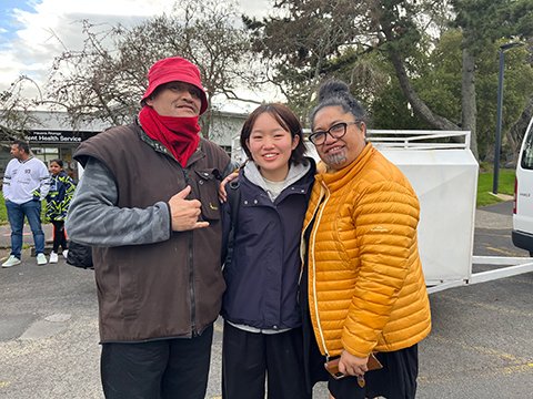 私は、ニュージーランドのワイカト大学で三週間の海外語学研修に参加しました。現地ではホストファミリーの家に滞在し、英語でコミュニケーションをとりながら生活しました。家では、ホストファミリーの孫と遊んだり会話をしたり、一緒に料理をしたりして過ごしました。私のホストファミリーはマオリの方だったため、マオリの文化に直接触れる機会もあり、マオリの女王の戴冠式にも連れて行っていただきました。